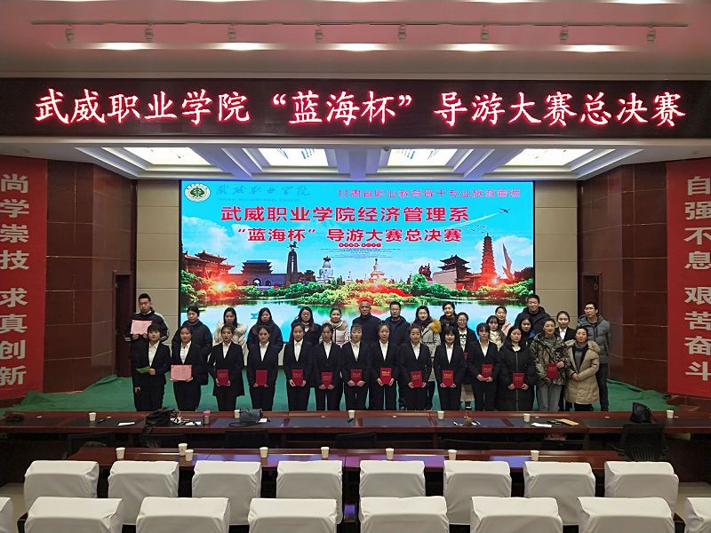 2018年12月28日,武威職業(yè)學院經(jīng)濟管理系“藍海杯“導游大賽決賽在大學生活動中心“菁英廳”圓滿落幕。此次活動是甘肅省職業(yè)教育骨干專業(yè)旅游管理專業(yè)建設活動之一。