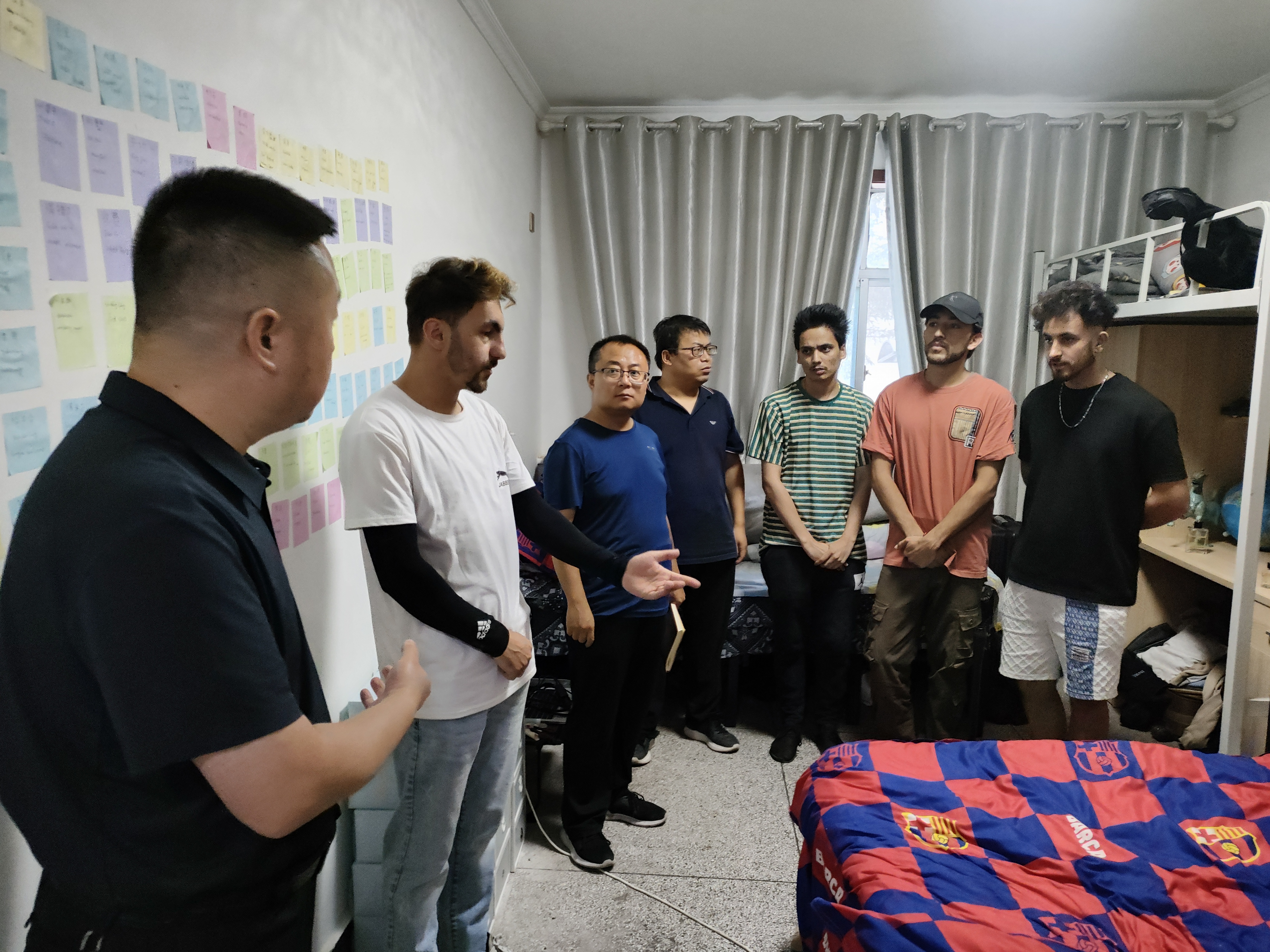 在新學(xué)期開學(xué)之際,國(guó)際合作交流處負(fù)責(zé)人帶領(lǐng)部門全體教師深入留學(xué)生宿舍,開展安全衛(wèi)生專項(xiàng)檢查,實(shí)地了解留學(xué)生開學(xué)準(zhǔn)備情況。