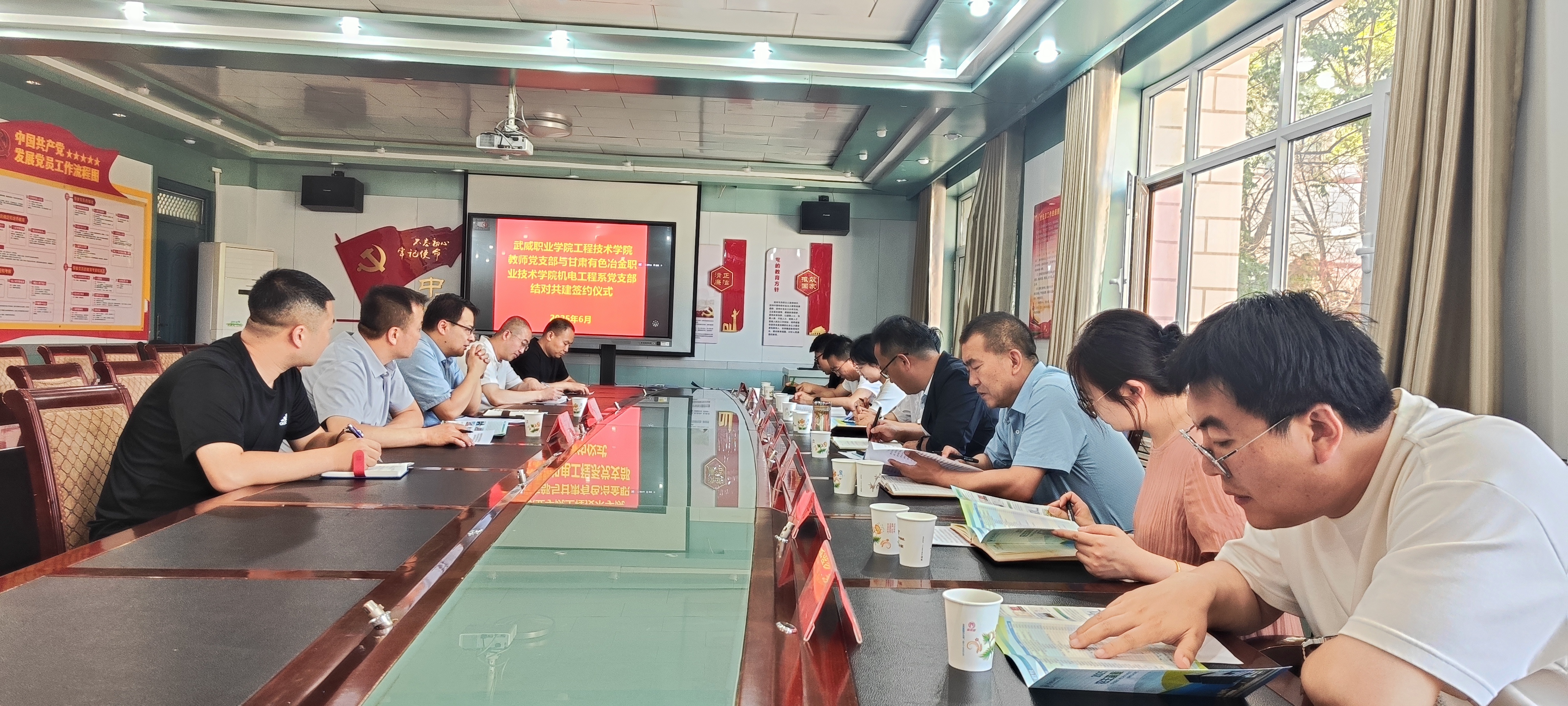 為進(jìn)一步加強(qiáng)黨組織建設(shè),提升黨員的政治素養(yǎng)和黨性修養(yǎng),6月11日,學(xué)校工程技術(shù)學(xué)院教師黨支部和甘肅有色冶金職業(yè)技術(shù)學(xué)院機(jī)電工程系黨支部結(jié)對共建簽約儀式在博學(xué)樓黨員活動室舉行。甘肅有色冶金職業(yè)技術(shù)學(xué)院組織部部長高立兵、督導(dǎo)中心主任趙登峰、機(jī)電工程系黨支部書記侯婷婷,學(xué)校工程技術(shù)學(xué)院黨總支書記王鐸云、副院長徐生龍出席儀式,雙方黨員共計(jì)20人參加儀式。