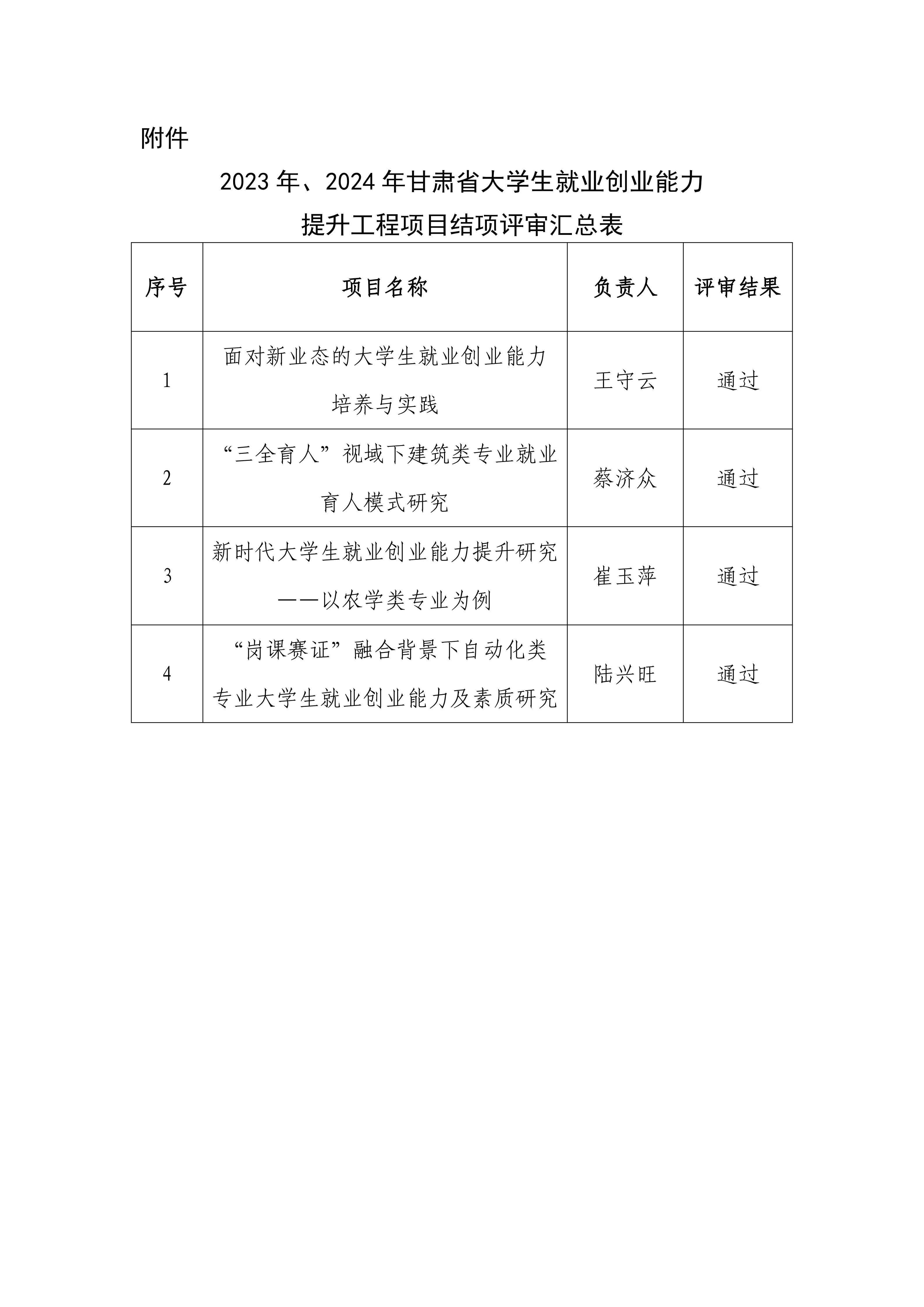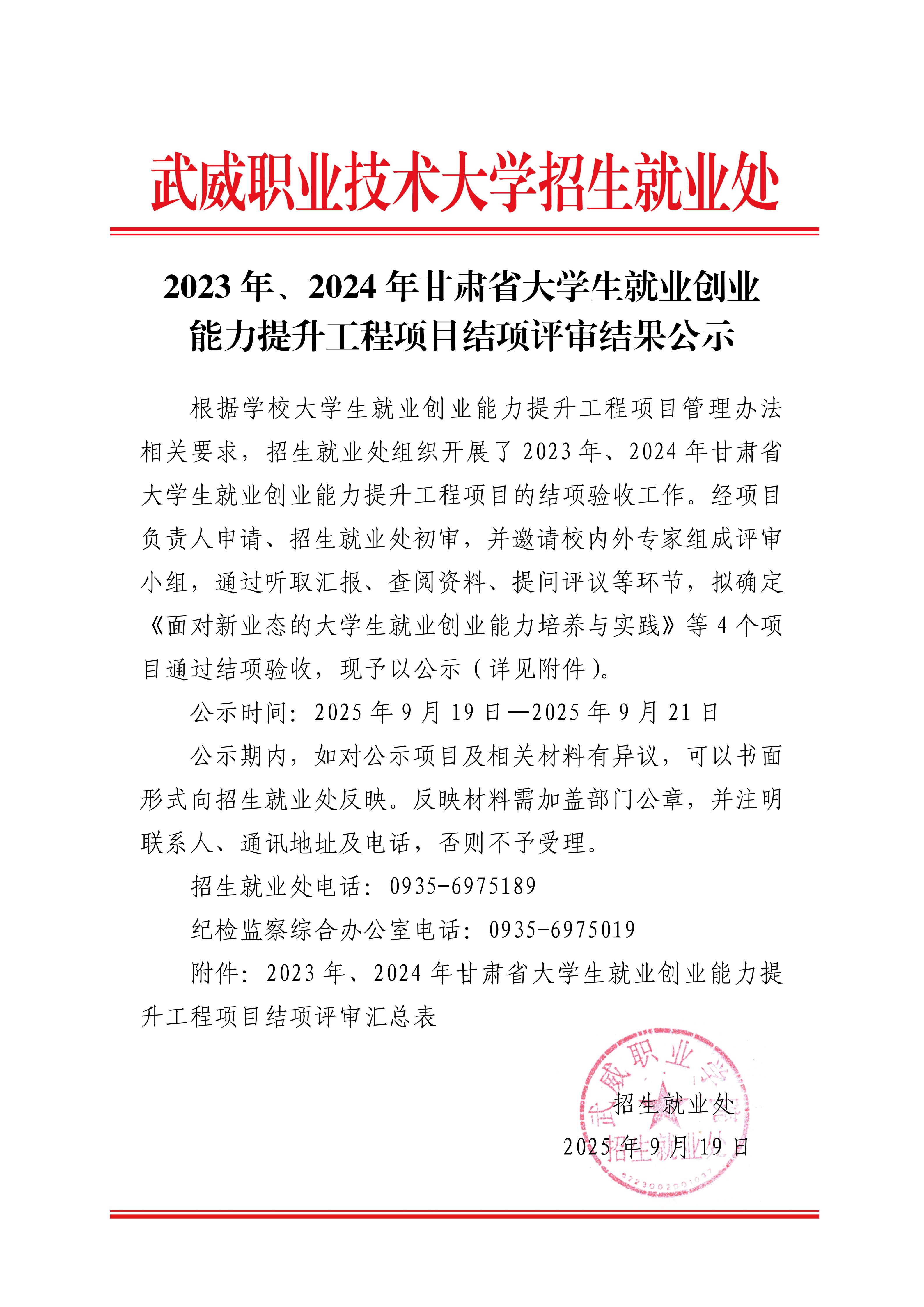 2023年、2024年甘肅省大學(xué)生就業(yè)創(chuàng)業(yè)能力提升工程項(xiàng)目結(jié)項(xiàng)評審結(jié)果公示