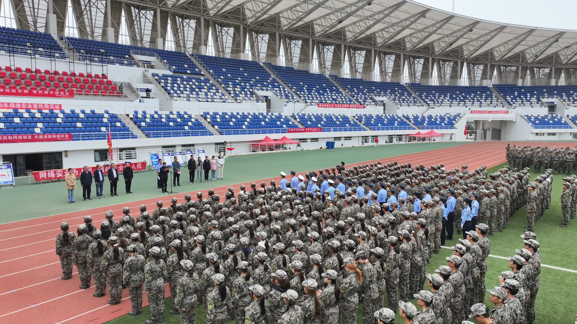 9月18日,武威市公安局網(wǎng)安支隊聯(lián)合武威職業(yè)技術(shù)大學(xué)在學(xué)校體育場舉辦2025年網(wǎng)絡(luò)安全宣傳周集中宣傳活動。信息技術(shù)學(xué)院組織全體師生參加了此次活動,活動以“網(wǎng)絡(luò)安全為人民,網(wǎng)絡(luò)安全靠人民——以高水平安全守護(hù)高質(zhì)量發(fā)展”為主題,旨在進(jìn)一步提升廣大師生的網(wǎng)絡(luò)安全意識和防護(hù)技能,營造清朗有序的校園網(wǎng)絡(luò)環(huán)境。武威市公安局網(wǎng)安支隊支隊長張建軍,學(xué)校網(wǎng)絡(luò)安全與信息技術(shù)中心工作人員,各學(xué)院輔導(dǎo)員現(xiàn)場參加活動。