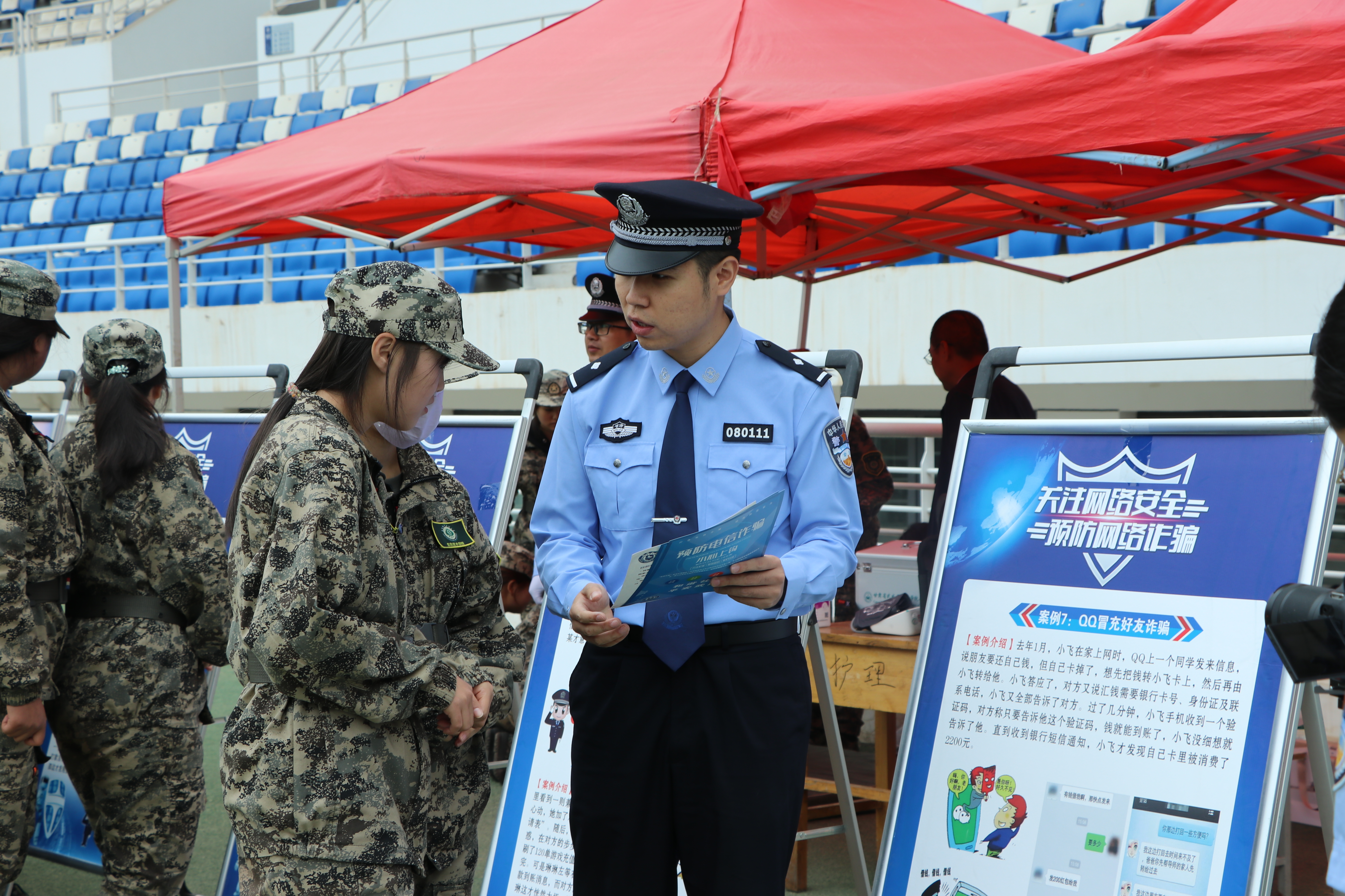 活動現(xiàn)場設(shè)置了“網(wǎng)絡(luò)安全主題展”,通過圖文展板、宣傳彩頁等形式,集中展示《網(wǎng)絡(luò)安全法》《數(shù)據(jù)安全法》《個人信息保護(hù)法》等法律法規(guī),以及AI換臉詐騙、網(wǎng)絡(luò)謠言治理、校園貸陷阱等熱點(diǎn)內(nèi)容。市公安局民警與學(xué)校網(wǎng)絡(luò)安全與信息技術(shù)中心工作人員現(xiàn)場發(fā)放《大學(xué)生防騙手冊》《個人信息保護(hù)小貼士》等宣傳資料,并耐心講解宣傳資料中的重點(diǎn)內(nèi)容。