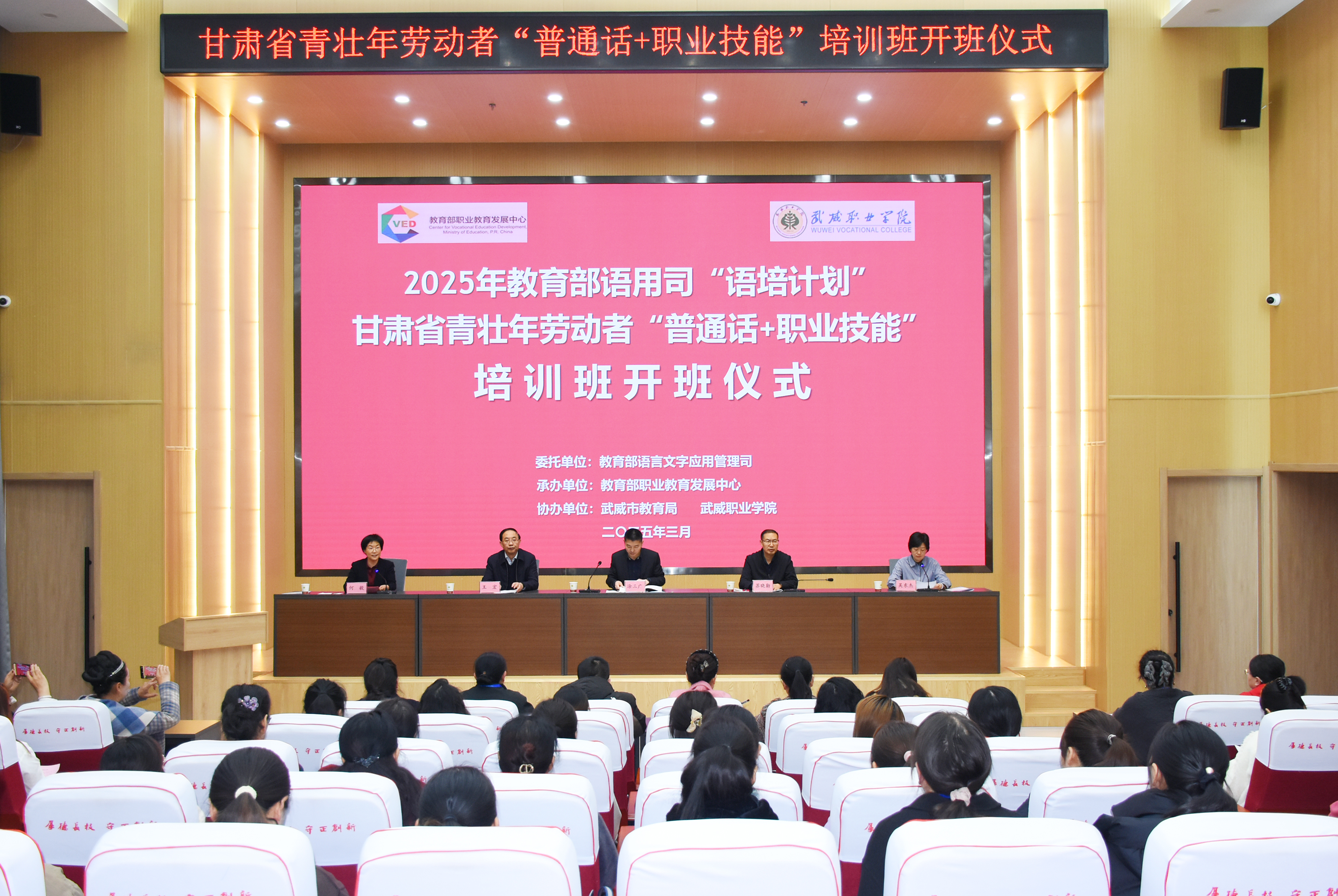 3月25日,教育部語用司“語培計劃”甘肅省青壯年勞動者“普通話+職業(yè)技能”培訓(xùn)班在學(xué)校成功開班。本次培訓(xùn)由教育部語用司主辦,教育部職業(yè)教育發(fā)展中心承辦,武威市教育局和學(xué)校協(xié)辦。本次培訓(xùn)是深入貫徹落實黨的二十大和二十屆二中、三中全會精神,落實全國教育大會精神,實施《教育強國建設(shè)規(guī)劃綱要(2024-2035年)》的重要舉措,旨在進(jìn)一步推廣國家通用語言文字的應(yīng)用,促進(jìn)鑄牢中華民族共同體意識。