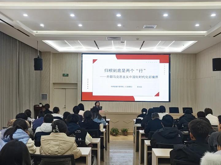 教學(xué)觀摩活動以“歸根到底是兩個行——開辟馬克思主義中國化時代化新境界”為題,從“真理之光:馬克思主義行”“實踐之行:中國化時代化的馬克思主義行”“復(fù)興之路:不斷開辟馬克思主義中國化時代化新境界”三部分展開講述,她從“兩個行”這一重大論斷的理論溯源、時代背景與核心要義切入,結(jié)合新時代以來的偉大實踐與歷史性變革,深刻揭示了中國共產(chǎn)黨為什么能、中國特色社會主義為什么好的理論邏輯與實踐密碼,生動回答中國之問、世界之問、人民之問、時代之問,實現(xiàn)了馬克思主義中國化時代化新的飛躍。她強(qiáng)調(diào),“兩個行”是相互貫通、有機(jī)統(tǒng)一的整體,開辟馬克思主義中國化時代化新境界,必須始終堅持“兩個行”的根本遵循,在實踐中不斷推進(jìn)理論創(chuàng)新,并用發(fā)展著的理論指導(dǎo)新的實踐。