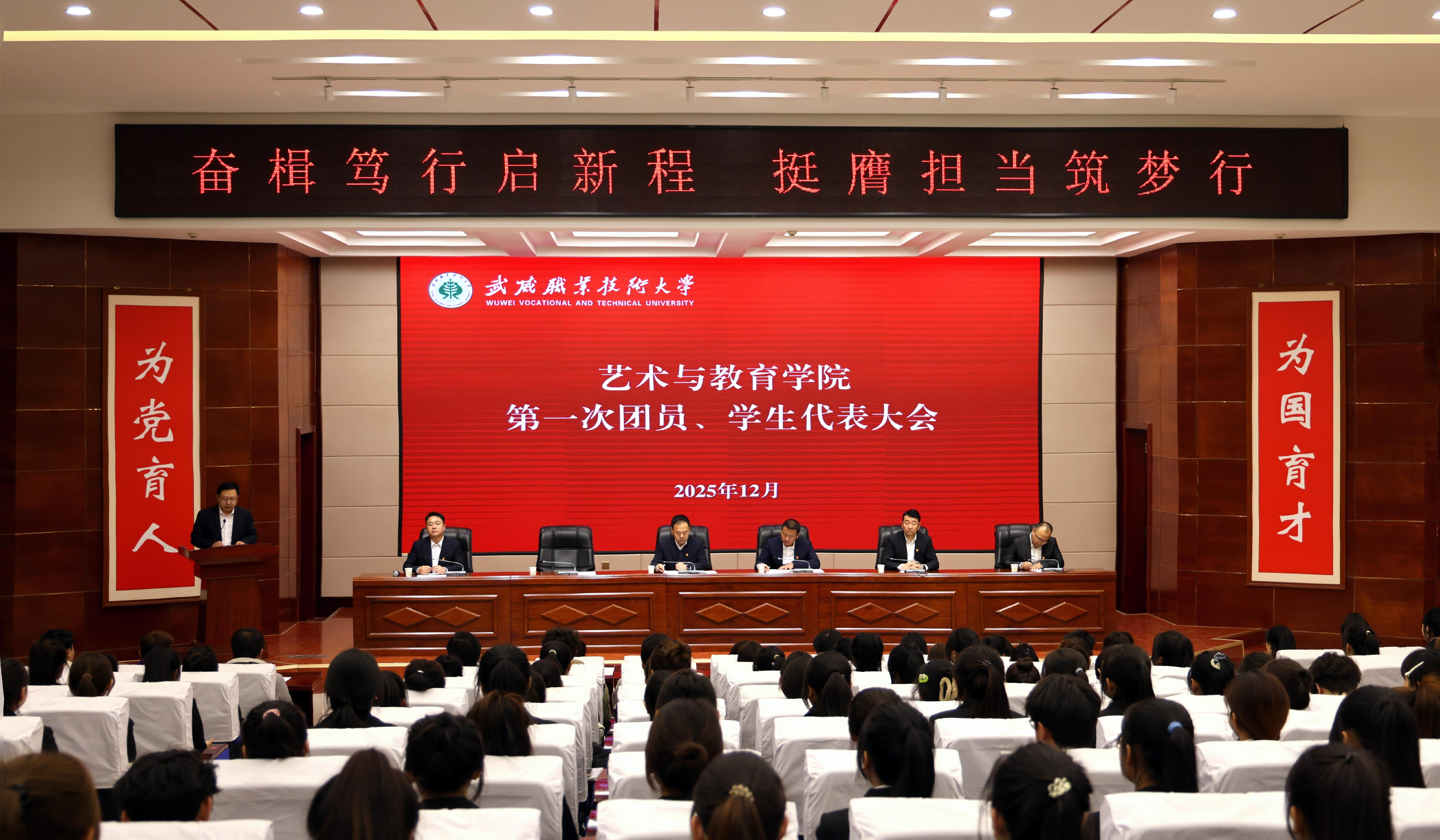 12月11日,藝術與教育學院第一次團員暨學生代表大會在菁英廳隆重召開。學院黨總支書記王政、黨總支副書記曹禎、學院副院長蘆小鵬,學院黨總支紀檢委員、輔導員齊斌文、輔導員唐鑫基及各班團員、學生代表共計200余人參加會議。會議由團委書記李志鴻主持。